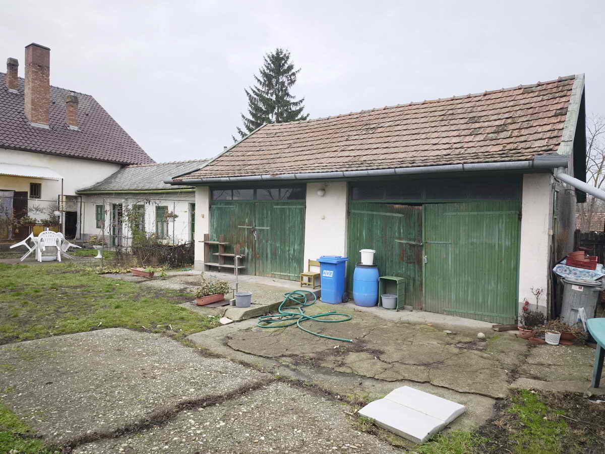 A körbekerített, fúrt kúttal és kerti csappal is rendelkező 1248 m2-es telken 3 külön bejáratú helyiségből álló melléképület, 2 garázs és ólak is találhatók. Az egyik garázs szerelőaknával és kis pincével is rendelkezik.