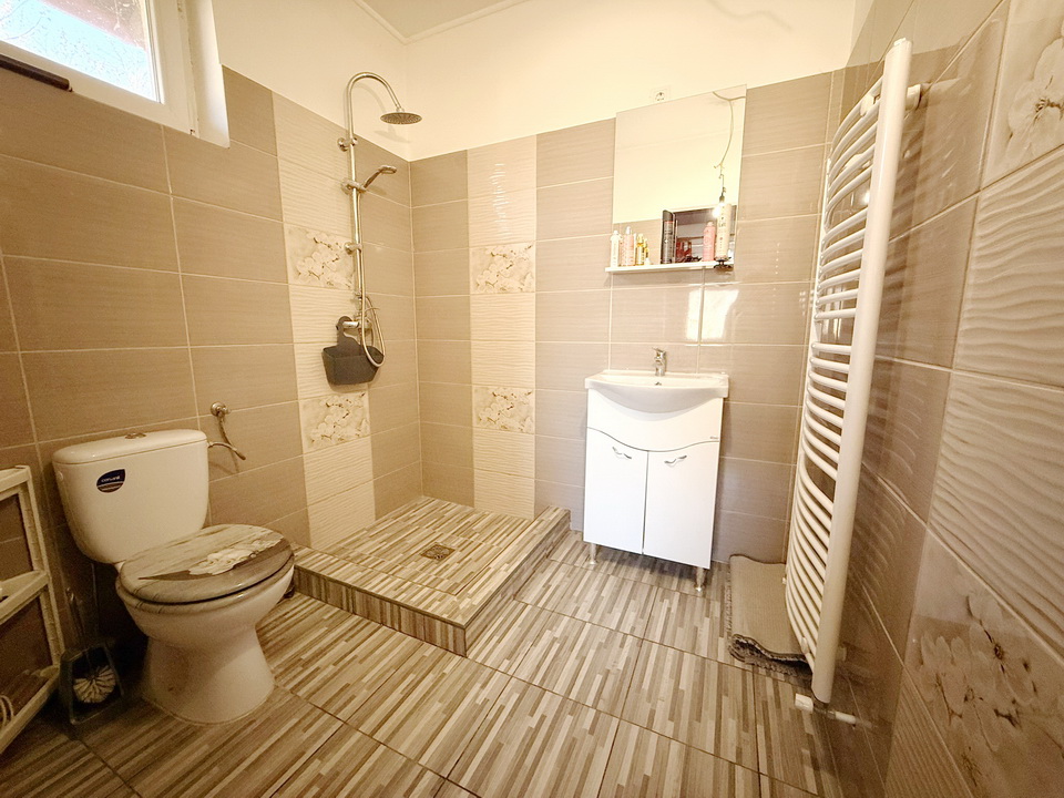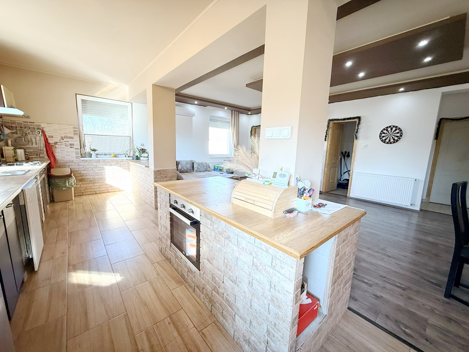 A ház melegéről és meleg vízellátásáról kondenzációs kombi gázcirkó gondoskodik, minden helységben radiátoros hőleadással. A hűtő-fűtő klíma extraként szolgál.