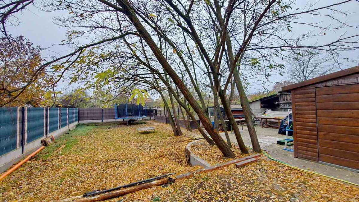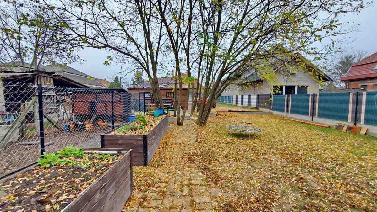 Méretéből adódóan a telek (848 m2) kiválóan alkalmas virágos kert/konyhakert kialakítására, pihenésre, kikapcsolódásra, medence telepítésére stb.