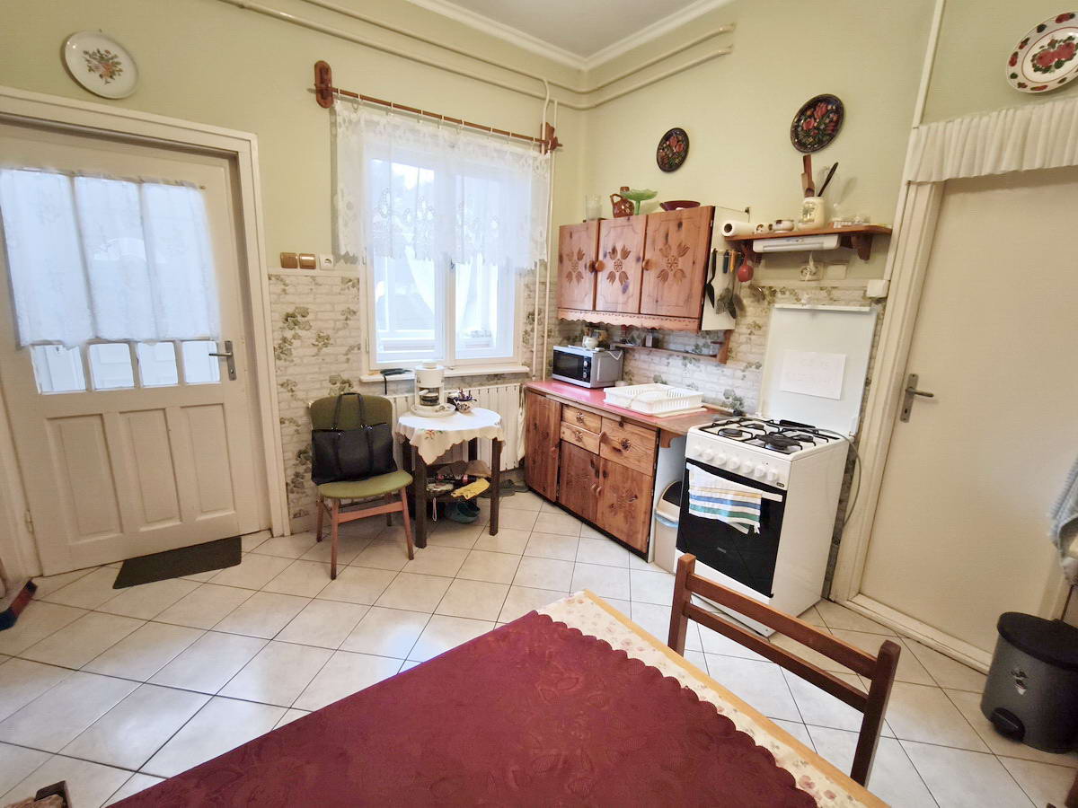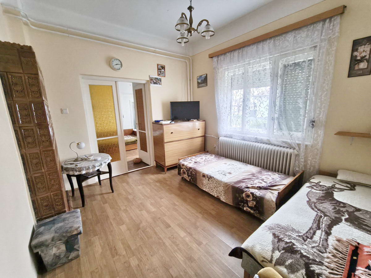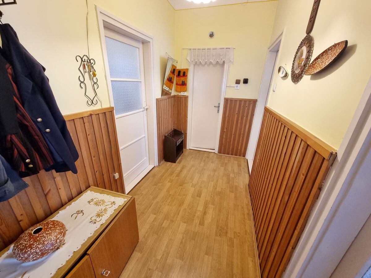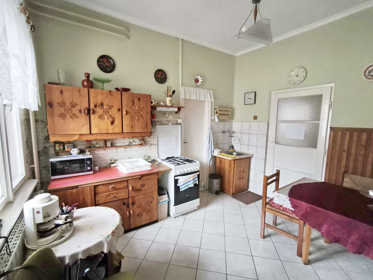 Előszoba (8,5 m2), közlekedő/folyosó (6,5 m2), 3 hálószoba (13,5 m2, 15,5 m2, 17,5 m2), különálló WC (1 m2), fürdőszoba (4 m2), konyha-étkező (12,5 m2), spájza (3 m2), hátsó közlekedő/folyosó (5 m2), kamra/padlásfeljáró (5 m2). A ház alatt található egy 8 m2-es borospince is.