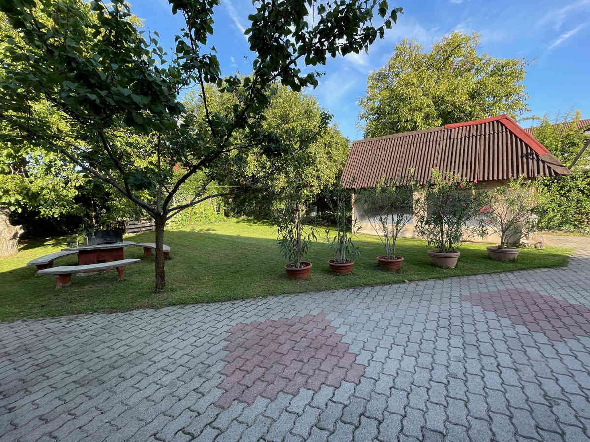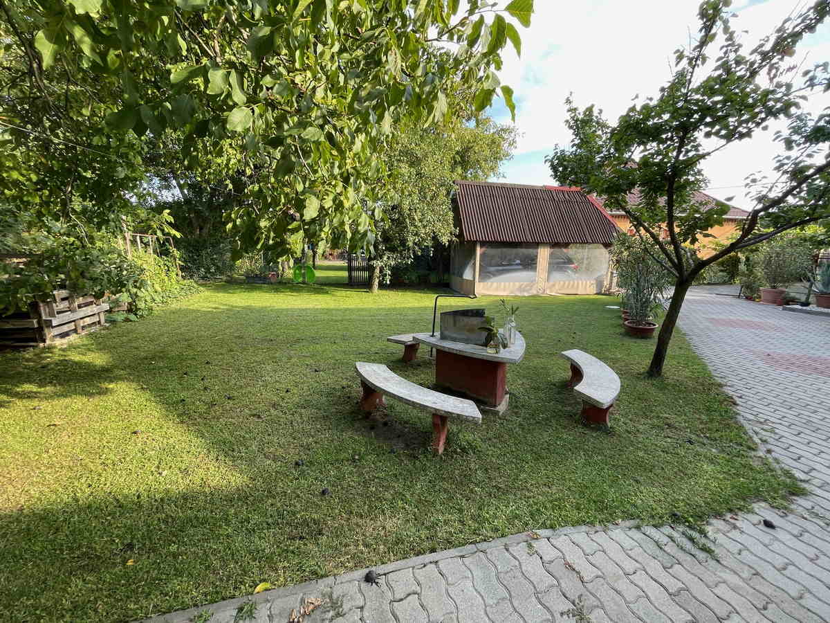 A csodás zöld növényekkel és bőven termő gyümölcsfákkal beültetett kertben bográcsozó is helyet kapott.
