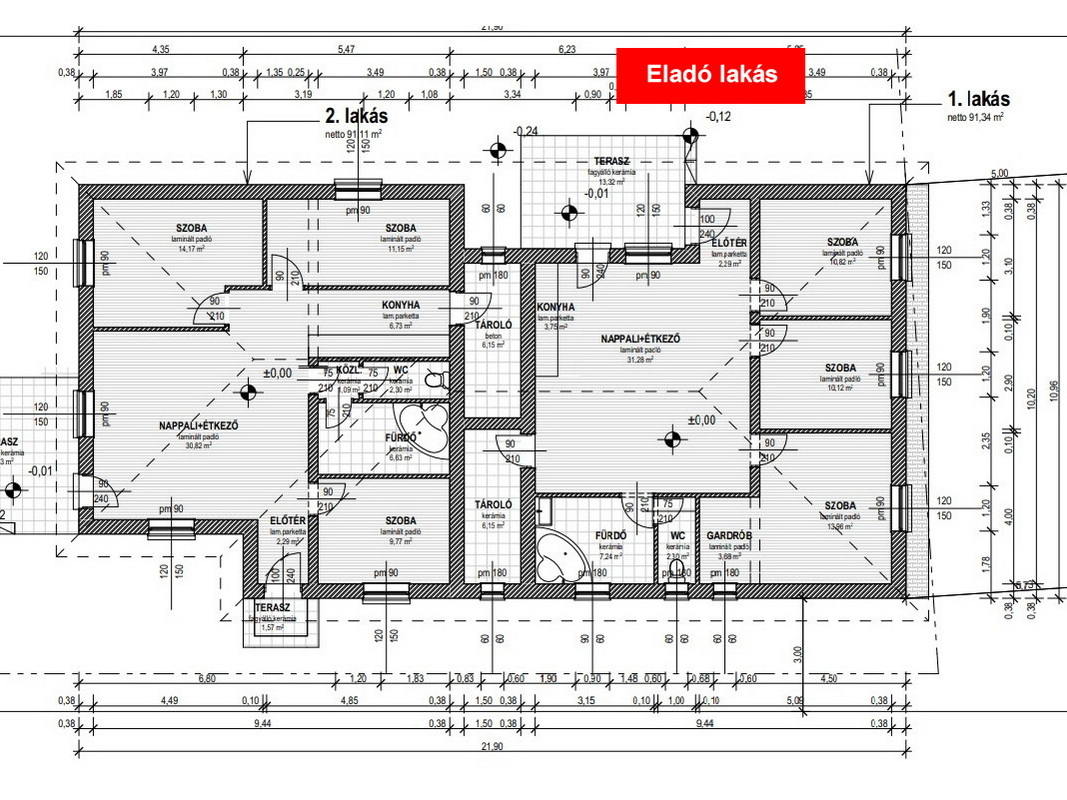 Nettó 91.34 m2 + 13.3 m2 terasz