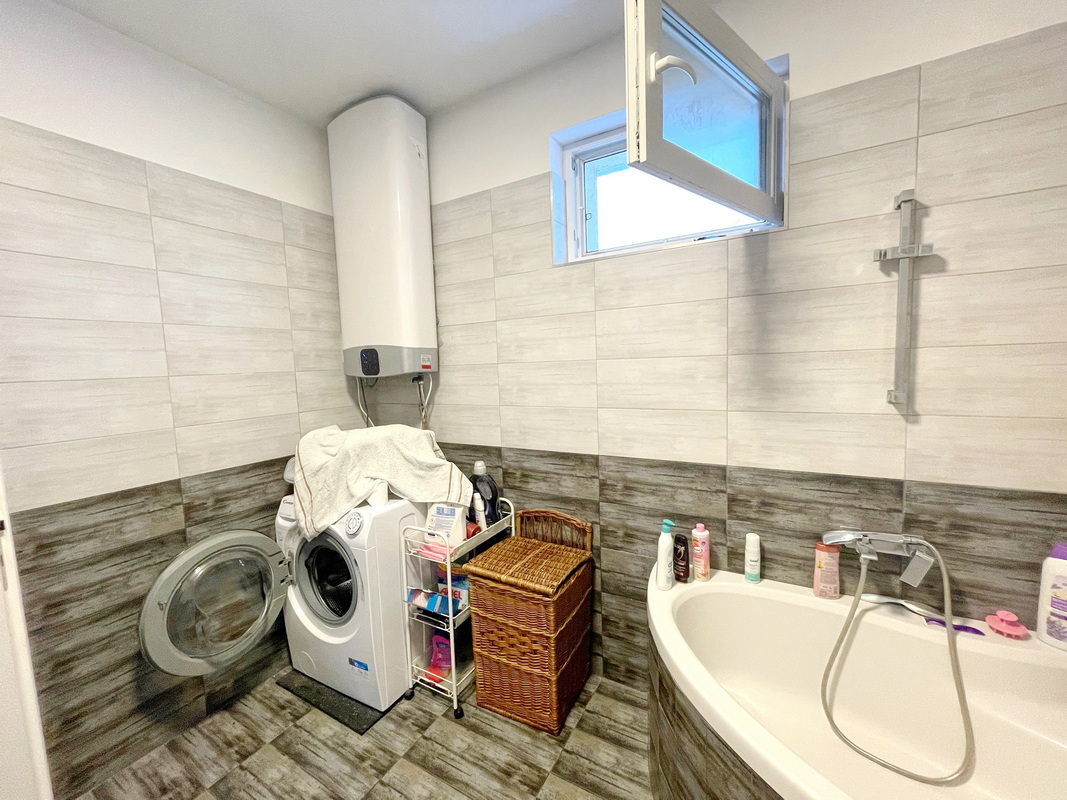 A melegvízről 2 tartályos, 100 literes Ariston villanybojler gondoskodik.