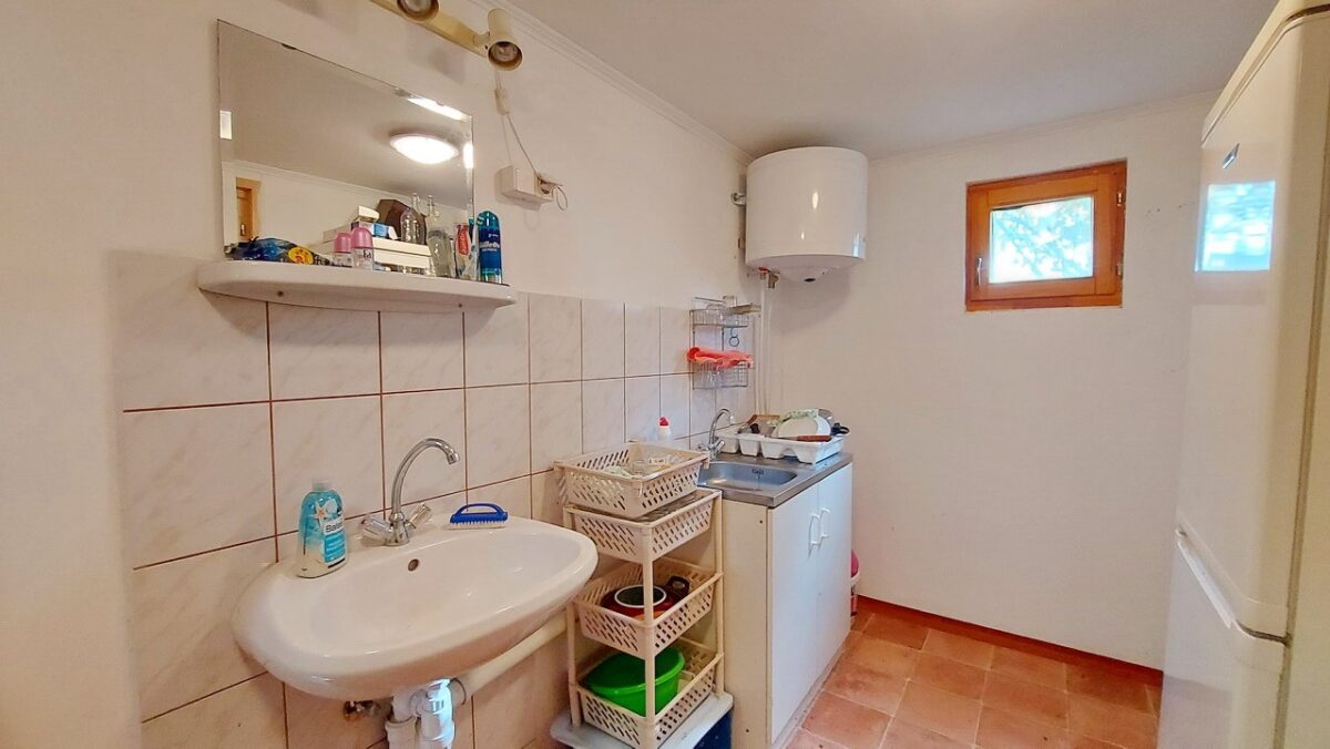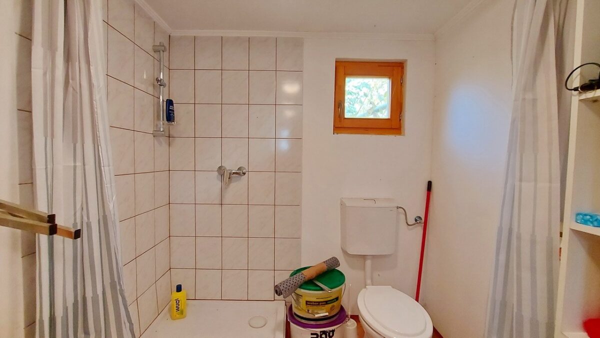 A használati meleg vizet elektromos bojler adja. A zsalugáteres ablakok fa keretesek.