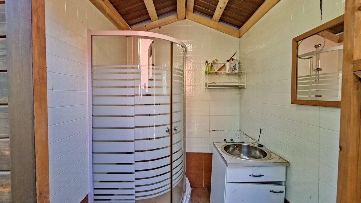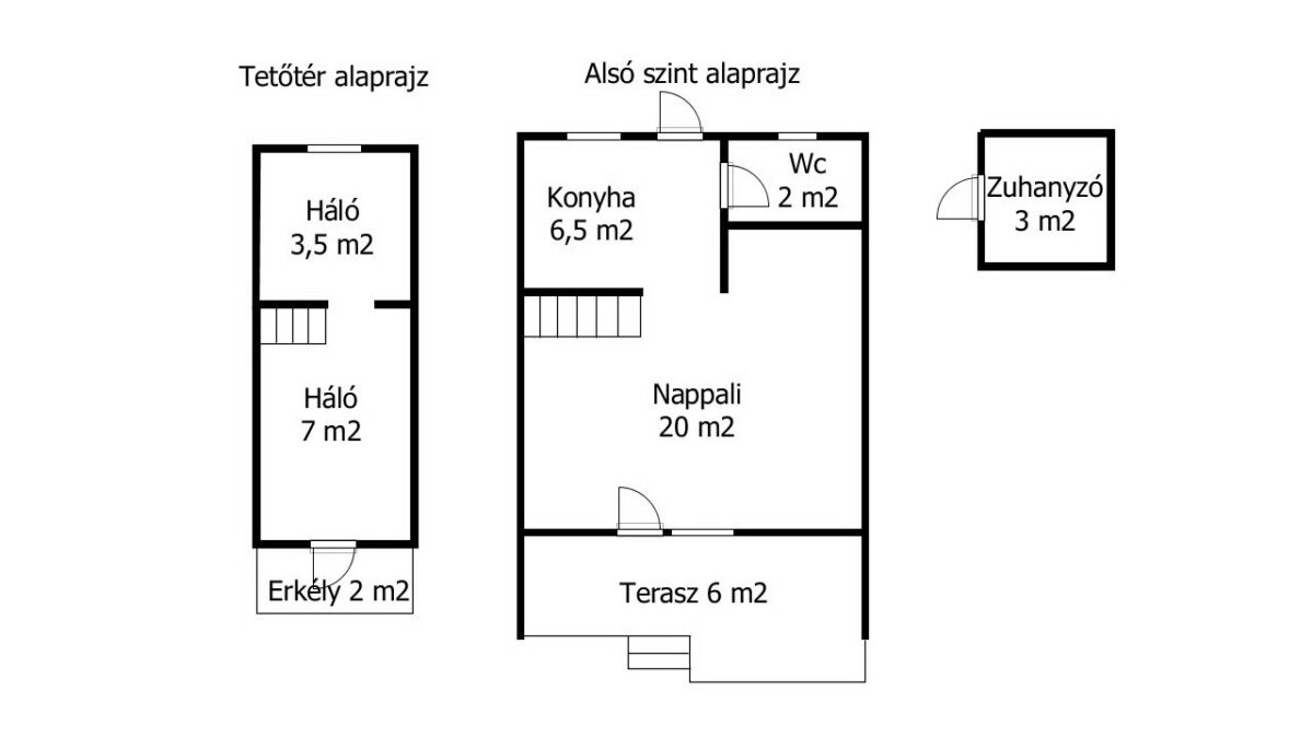 A telek 573 m2, a nyaraló lakótere 42 m2 + a terasz és az erkély.