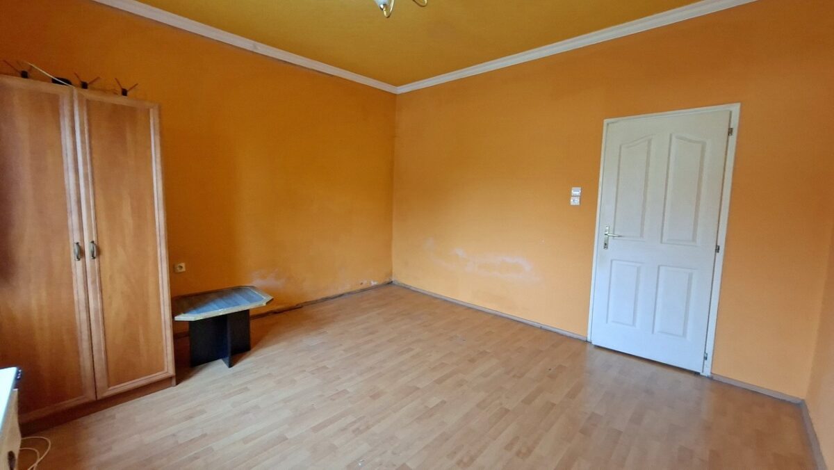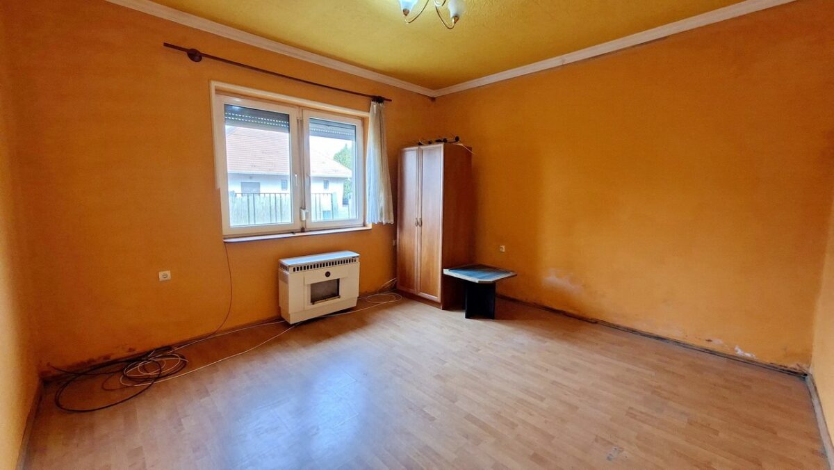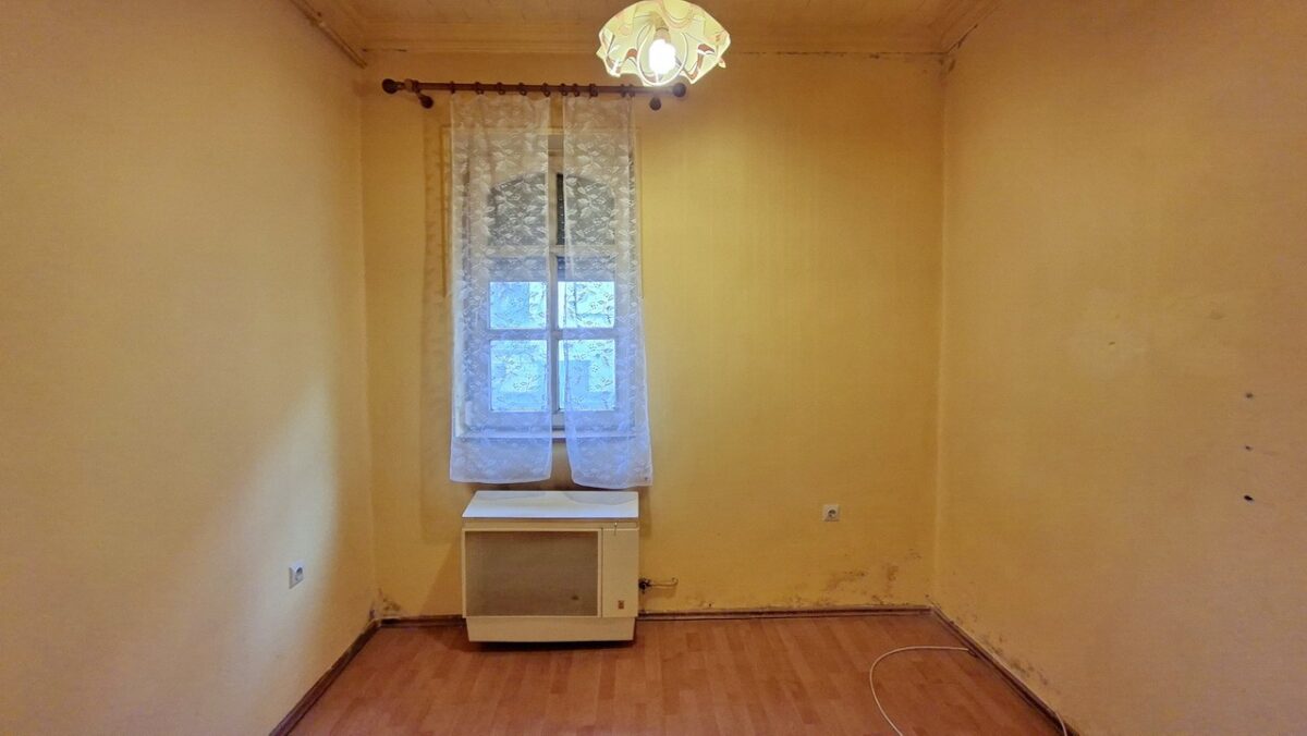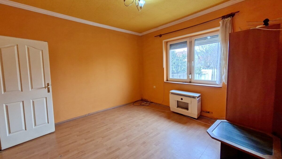 A szoba (16,5 m2) redőnnyel szerelt és műanyag keretes ablaka az előkertre, az utca felé tekint.
