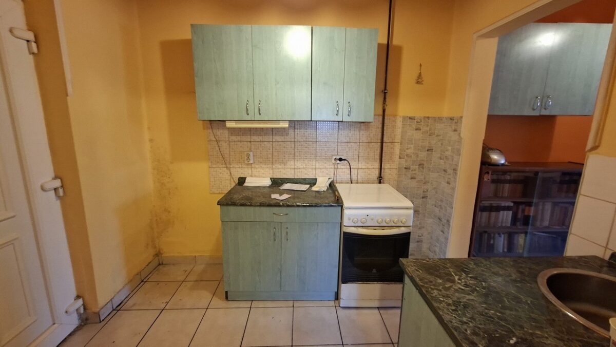 Az előszobából jobbra nyílik a konyha (5,5 m2), ahol szintén kerámia járólap a padlózat burkolata.