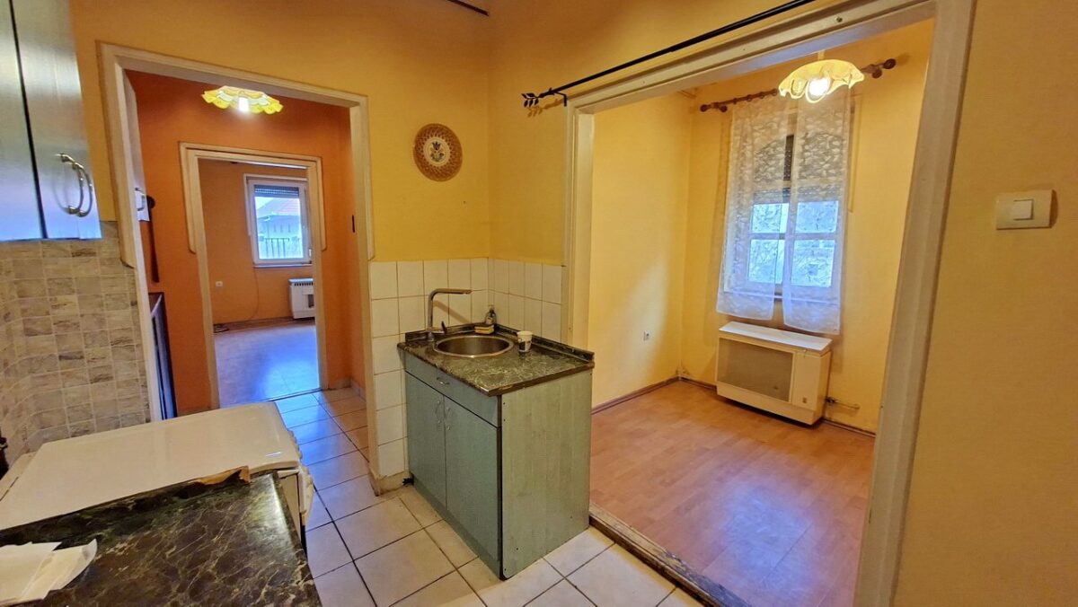 Szigethalom kertvárosi részén eladó ez a házrész („Kádár kocka” fele), használati megosztással.