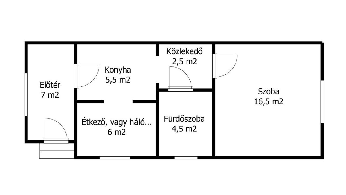 A félszoba (6 m2) a konyhából nyílik, ez a helyiség lehet étkező, vagy háló is. Amennyiben hálóvá válik, úgy a nagyszoba nappali lehet.