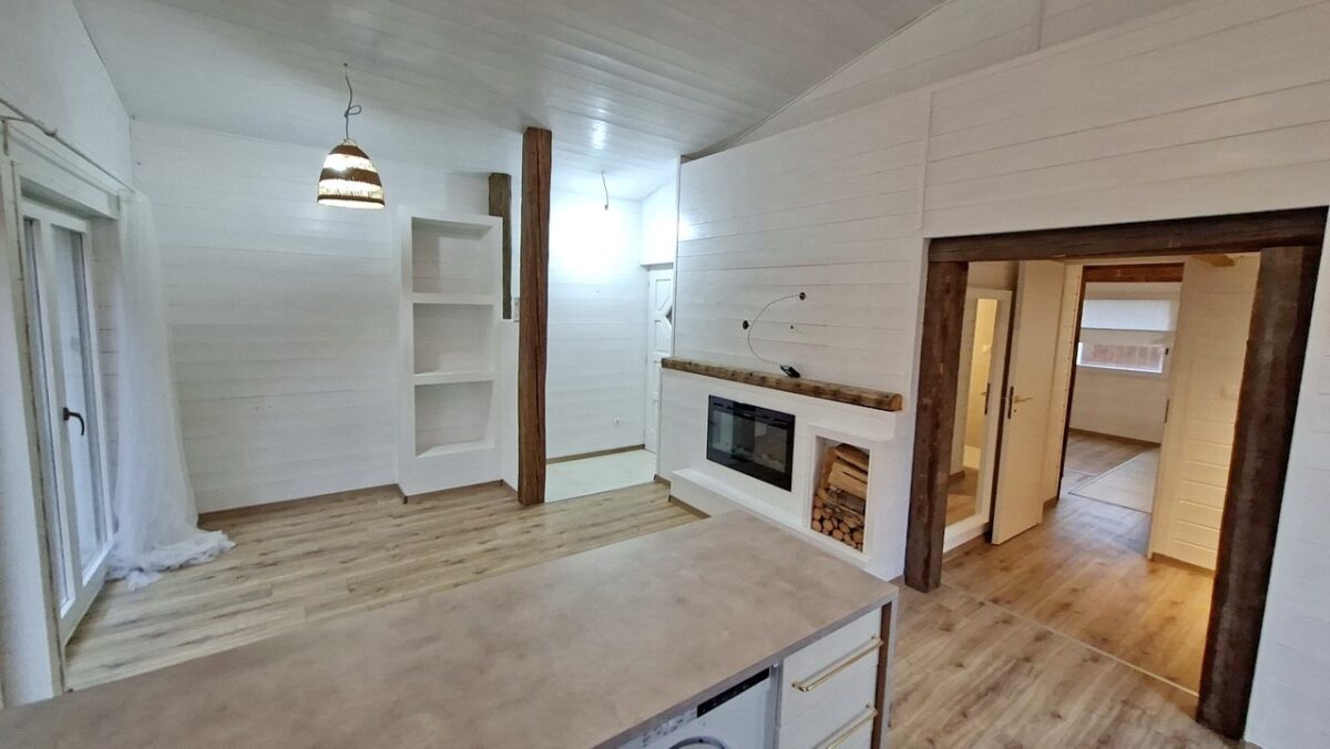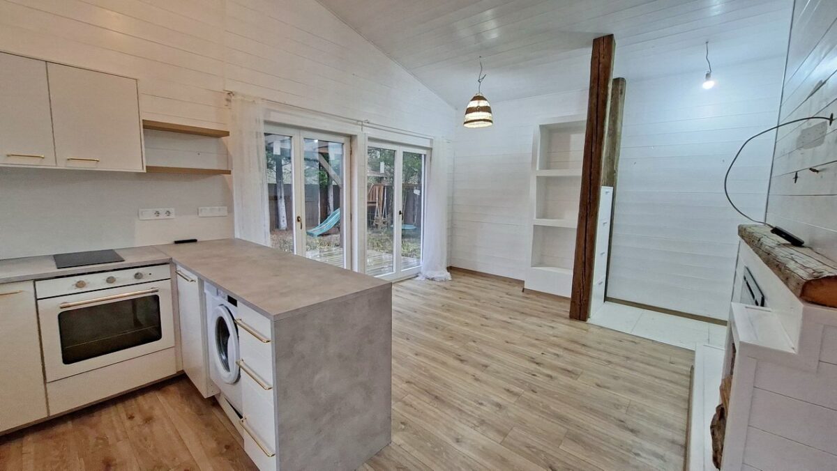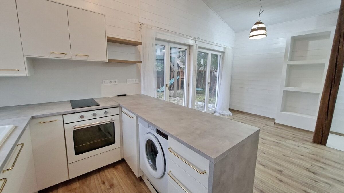 A nappali sarkában van a praktikusan kialakított konyha.