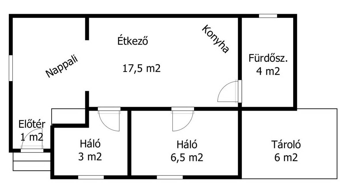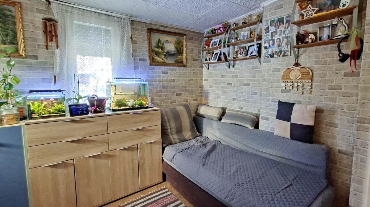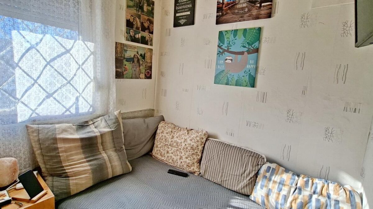 A két hálóhelyiség (3 m2 és 6,5 m2) harmonika ajtóval nyílik, mindkét háló ablaka a ház oldala felé tekint. A nagyobb hálóban elektromos fűtőpanel is adhat meleget.