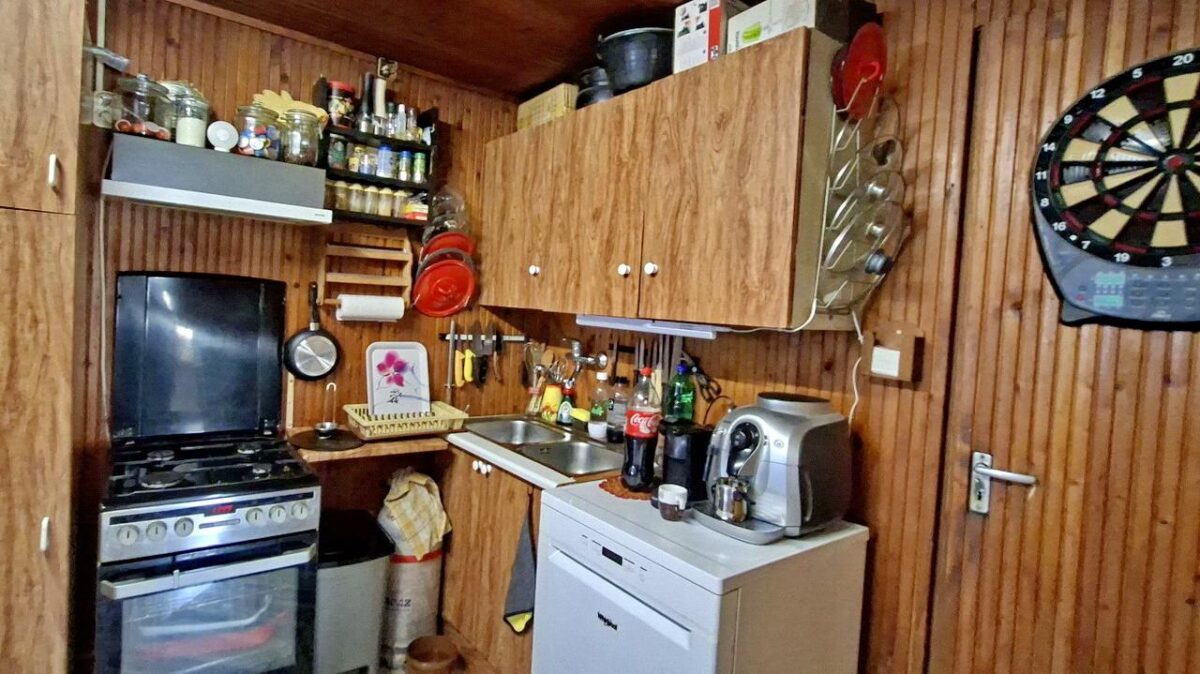 A házikó mögötti terület ideális lehet akár medence elhelyezésére és/vagy “gasztro-sarok” kialakítására.