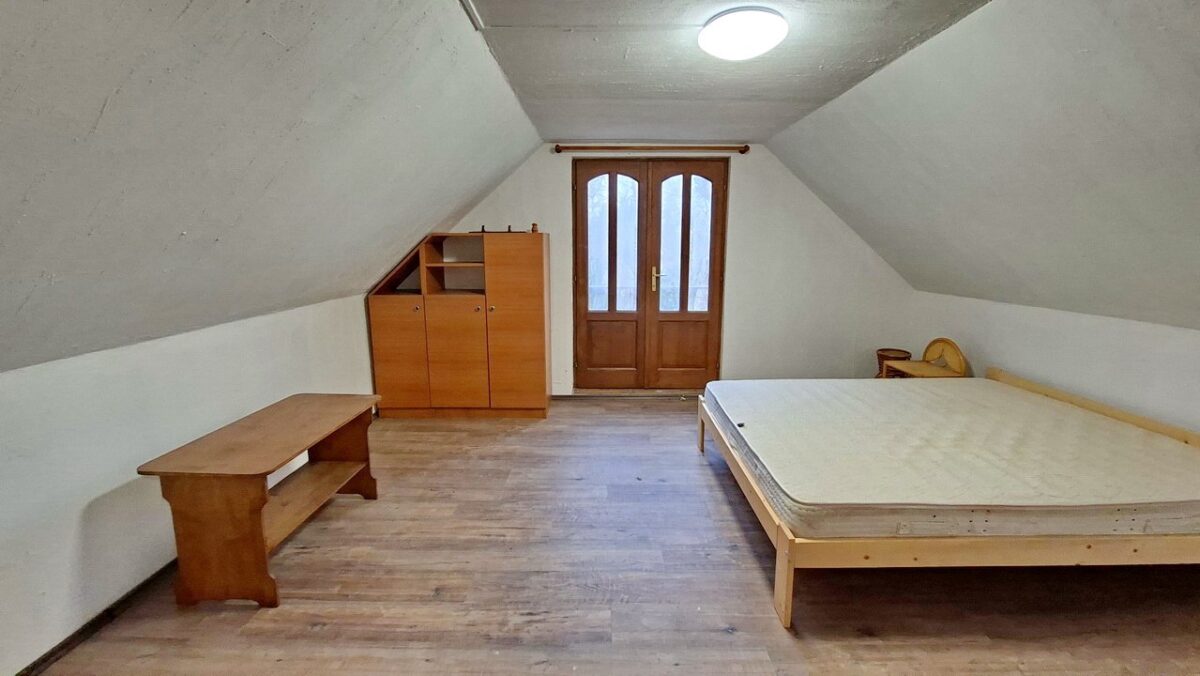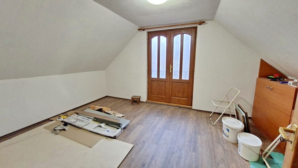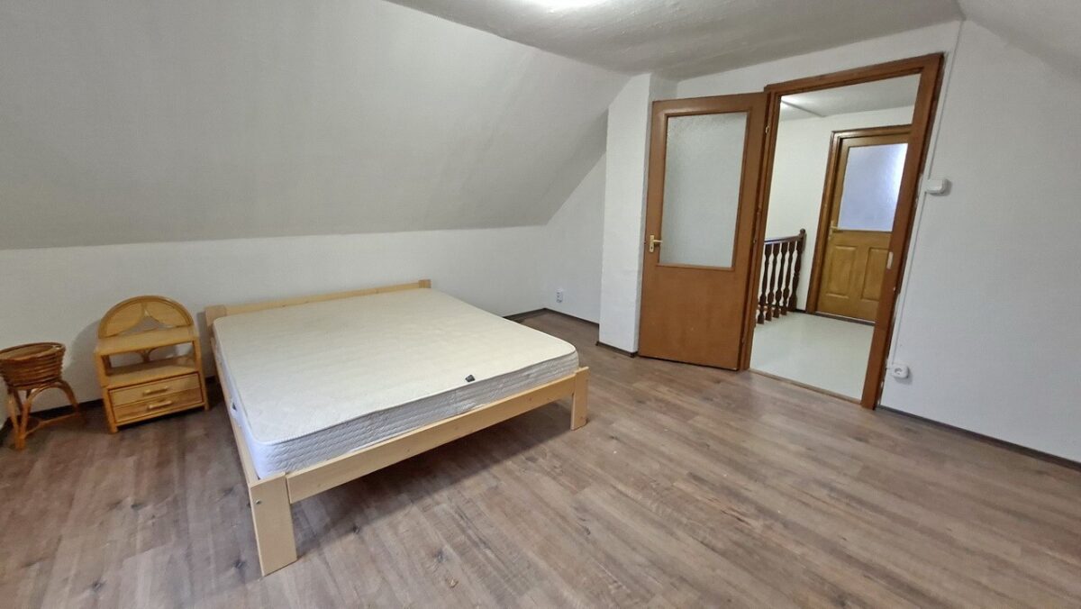 A felső szinten egy közlekedőből nyílik a három hálószoba. A legkisebbnek tetőablaka van. A két nagyobb hálószobának francia-erkélye van.