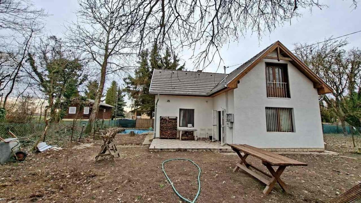 A ház háta mögött a kertből nyíló tároló 3 m2, kerti eszközök tárolására optimális, ebben van az elektromos bojler is.