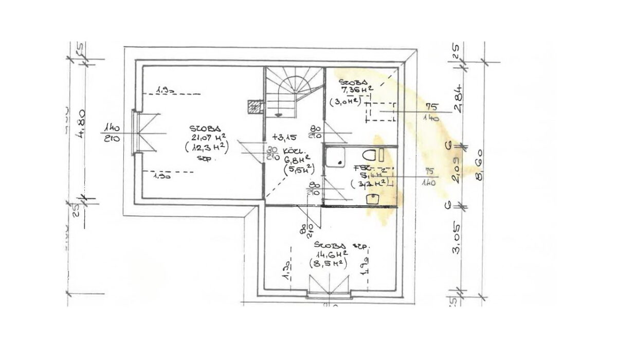 FONTOS: az eredeti tervekhez képest eltér, hogy a tetőtérbe tervezett fürdőszoba nem lett kialakítva, a felső szinten a közlekedőből 3 hálószoba nyílik.