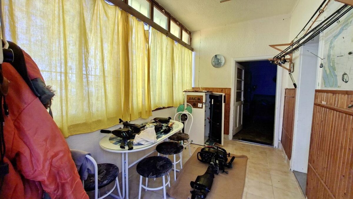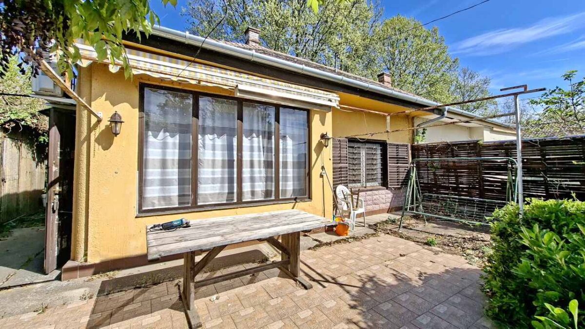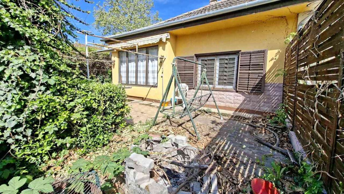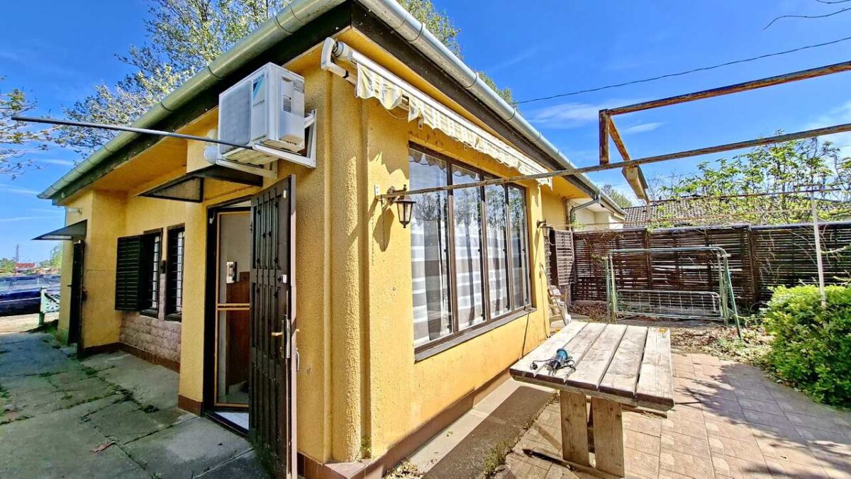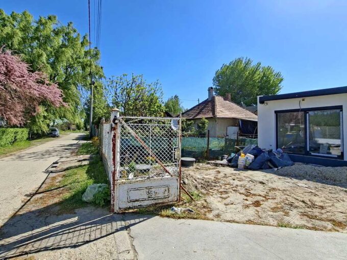 A vízparti ház egyik fele eladó. A 2 telekrész kerítéssel el van választva, mérete 196 m2.