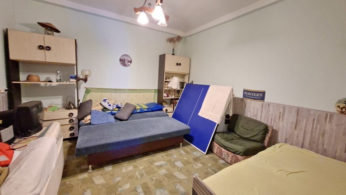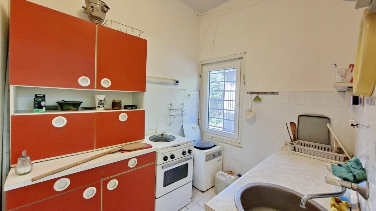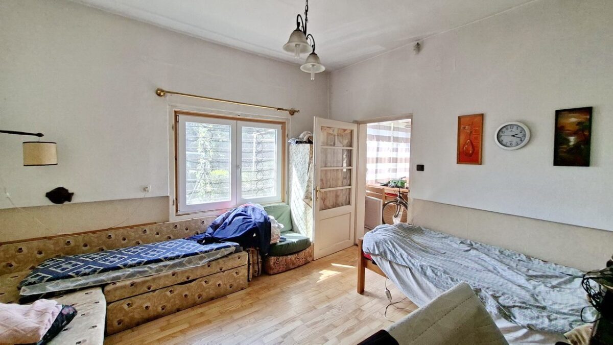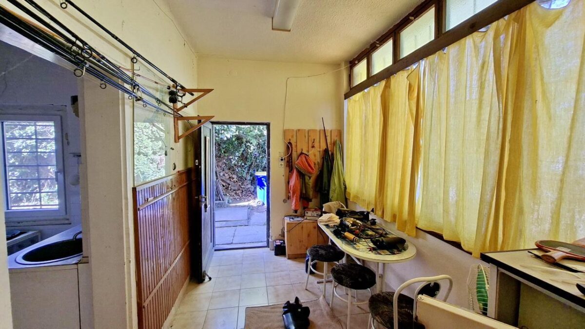 A vízparti ház egyik fele eladó. A 2 telekrész kerítéssel el van választva, mérete 196 m2.