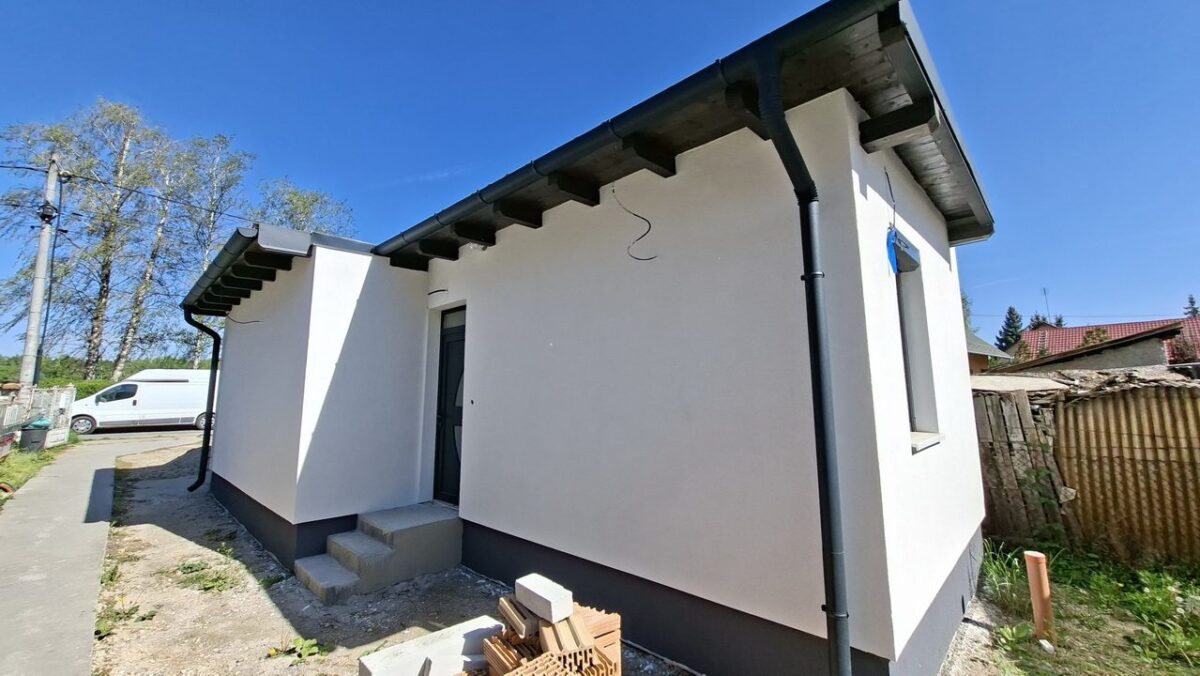 A beton alapra tégla falazattal épült nyaraló tetején a héjazat cserepes lemez. Az épület homlokzati (grafit) és mennyezeti (tűzálló fújt hab) hőszigetelést is kapott. A belmagasság 2,6 m.