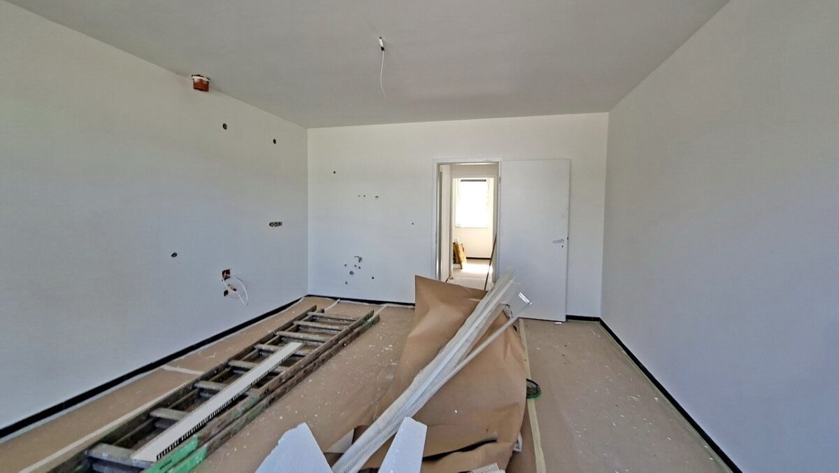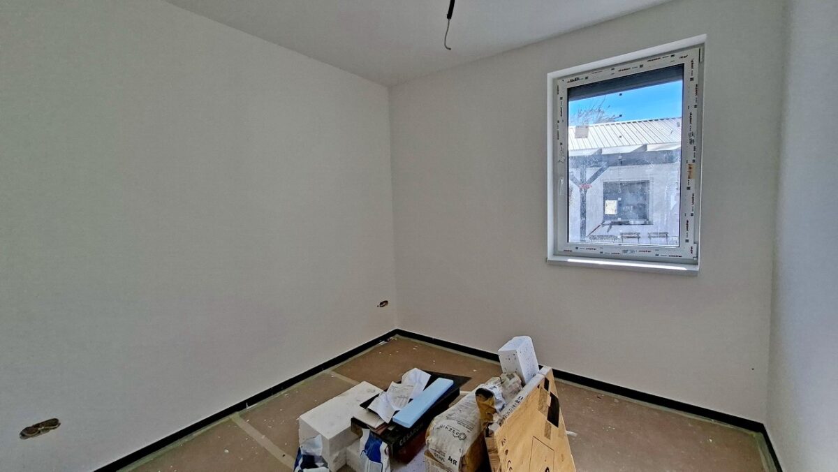 A háló (9 m2) padlózata szintén kerámia járólap, ablaka a ház háta mögötti területre néz, ahol a mögötte lévő nyaralótól szintén kerítés szeparálja majd birokba adásig.