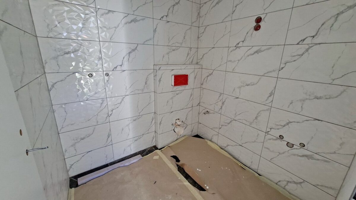 A közlekedőből nyílik a fürdőszoba (4 m2), ahol a padló és a falak is kiváló minőségű hidegburkolatot kaptak. A vizesblokkban zuhanyzó, wc és kézmosó kapnak helyet. A fürdőből a gőzt szintén elszívó rendszer vezeti ki a szabadba.
