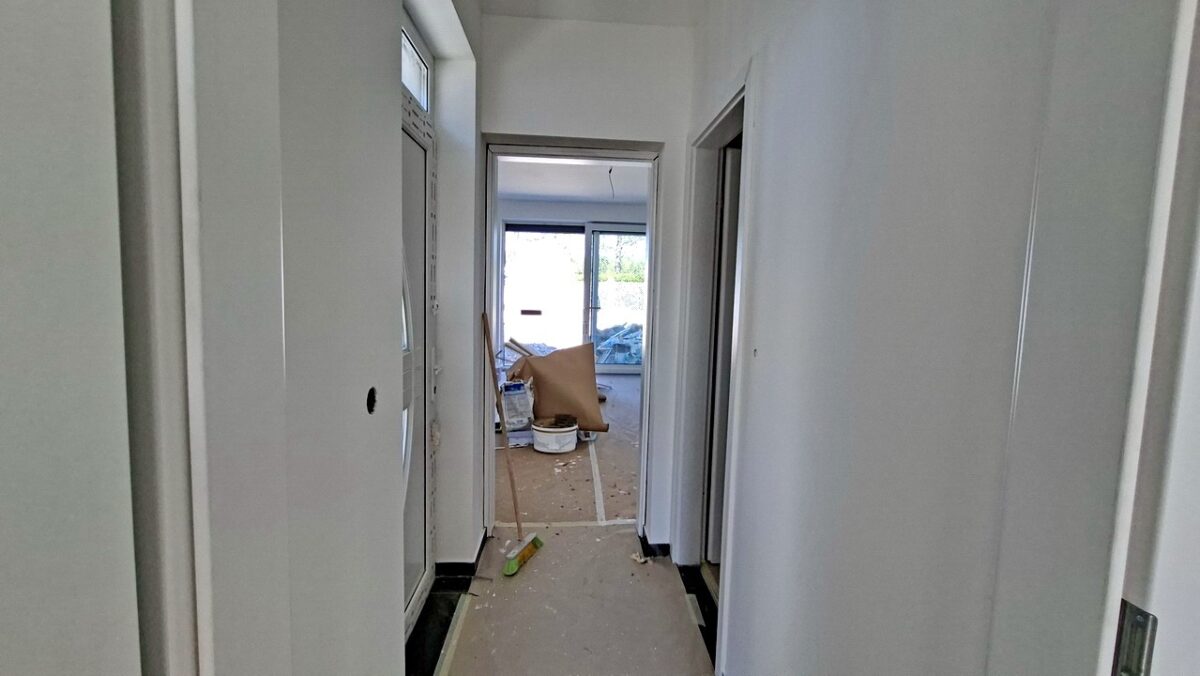 A panorámás telekről a házba oldalról léphetünk be egy biztonsági bejárati ajtón keresztül.
